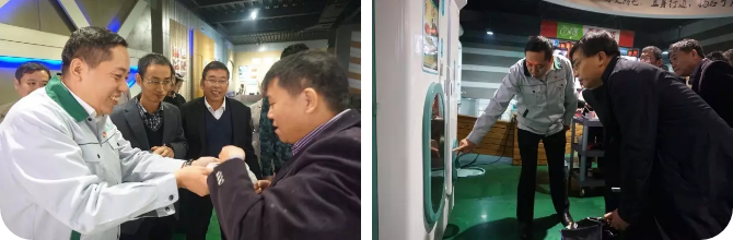 馮毅雄教授一行冒雨先后到萬杰智能的原料倉庫、機加車間、研發中心、組裝車間及產品展示廳進行了詳細的考察,過程中對萬杰智能的產品創新與現場管理贊不絕口,而且對萬杰智能車間的打造充滿信心。馮毅雄教授表示"將動用浙大與院士團隊的主力資源為萬杰生產制造實現智能化開辟新征程,同時,著力協助萬杰制定智能主食機械產品智能化,到生產智能化的行業標準與產業升級"。