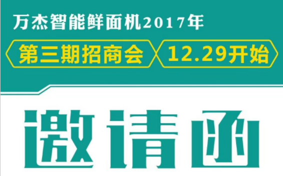 2017年即將過去,這一年,萬杰智能收獲滿滿,智能鮮面機商業(yè)模式逐漸成型,全國招商火爆持續(xù),熱度不減,萬杰智能衷心的感謝合作伙伴的支持與信任。乘著2017年精彩不斷的“尾巴”,為回饋客戶的期待,萬杰智能現(xiàn)決定正式召開第三期招商會。 ★時間:2017年12月29日(本周五)。 ★地點:萬杰智能總部。 ★內(nèi)容:萬杰智能將帶您參觀工廠、進行項目解讀、商務洽談,為您全面展示智能鮮面機樣板市場及前兩期合伙人的運營情況等。 ★聯(lián)系電話:400-667-9528;156-1726-7952。 搜索 復制 |